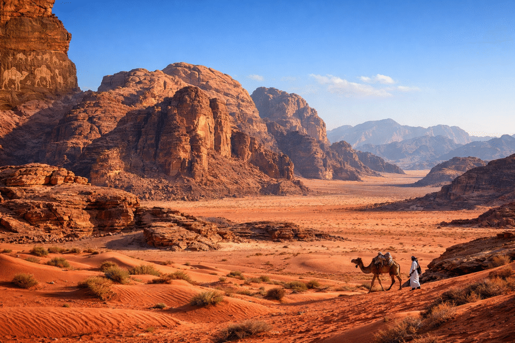 Today, visitors from around the world come to Wadi Rum to experience its incredible landscapes and desert activities such as jeep tours, camel riding, hiking, rock climbing, and traditional Bedouin camping under the stars.