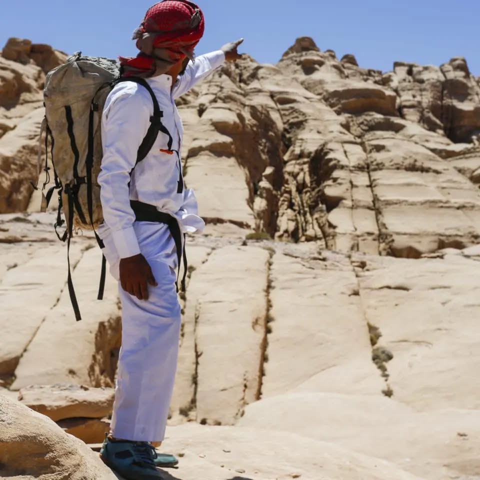 Climb to one of Wadi Rum’s most iconic landmarks — the Burdah Rock Arch.